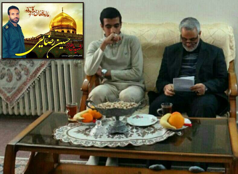 Haji Qasem in visita alla famiglia di un soldato iraniano morto in Siria è più affascinante di quando si trovava in Iraq per altri motivi . In maglione e giacchetta.